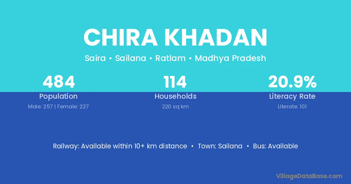 Sailana is the nearest town to Chira Khadan village for major economic activities