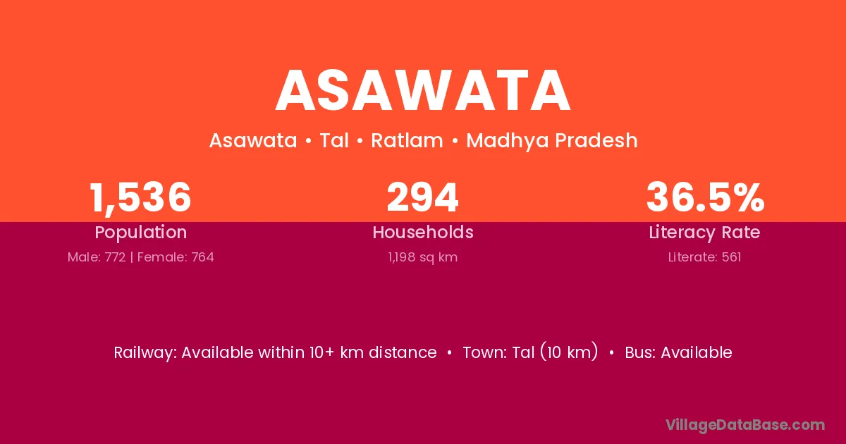 Asawata village has a total population of 1,536 people, of which 772 are males and 764 are females.