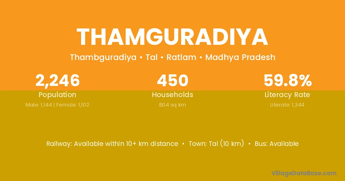 Thamguradiya village has a total population of 2,246 people, of which 1,144 are males and 1,102 are females.