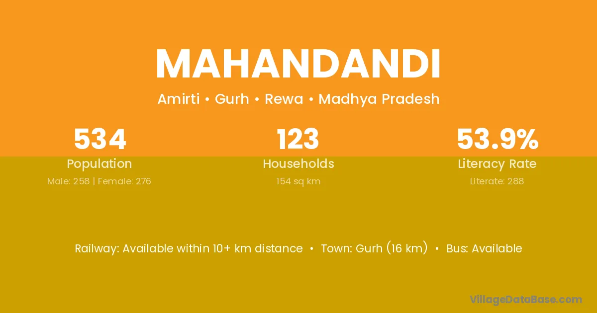 Gurh (16 km) is the nearest town to Mahandandi village for major economic activities and is located approximately 16 km away.