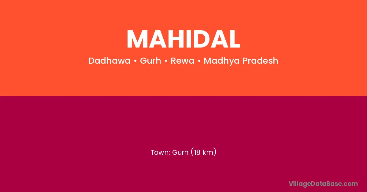 Gurh (18 km) is the nearest town to Mahidal village for major economic activities and is located approximately 18 km away.