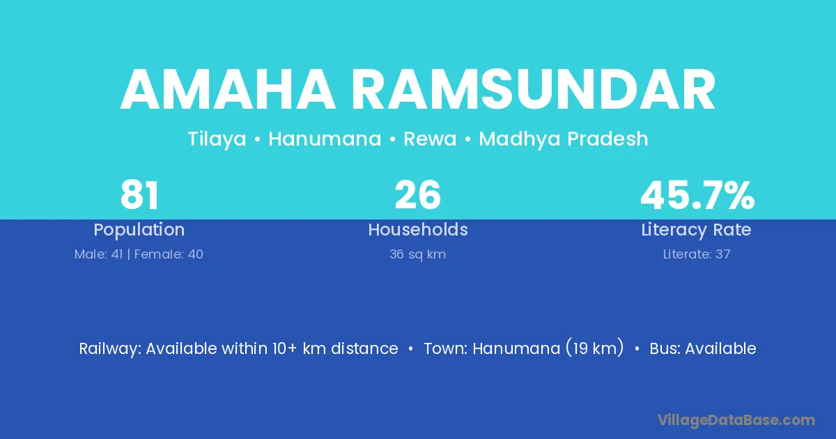 Hanumana (19 km) is the nearest town to Amaha Ramsundar village for major economic activities and is located approximately 19 km away.