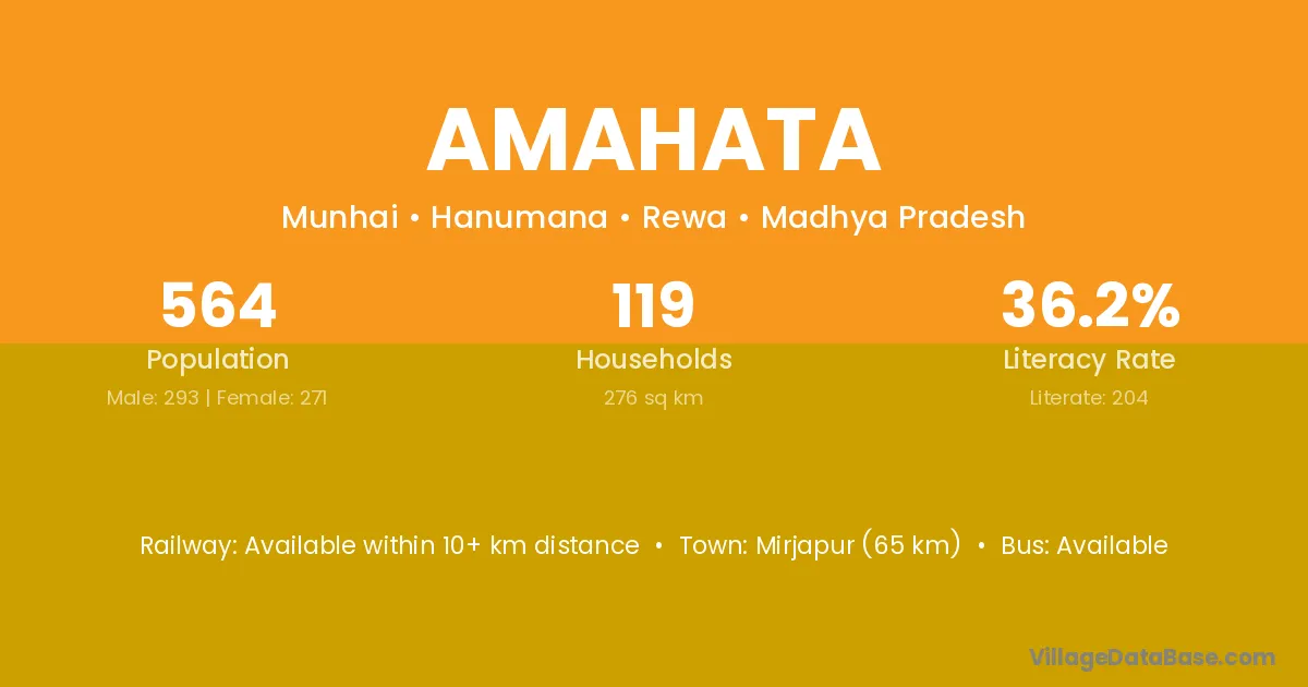 Amahata village has a total population of 564 people, of which 293 are males and 271 are females.