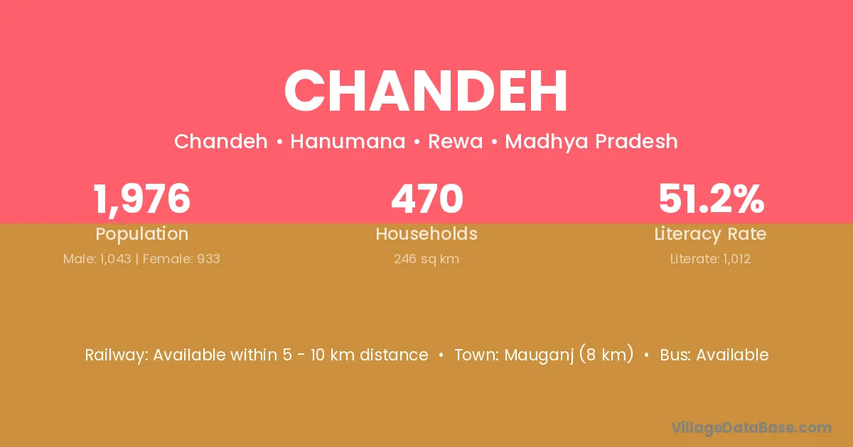 Mauganj (8 km) is the nearest town to Chandeh village for major economic activities and is located approximately 8 km away.