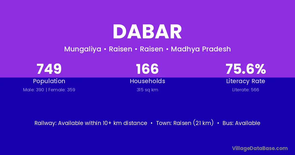 Hanumana (22 km) is the nearest town to Dabar village for major economic activities and is located approximately 22 km away.