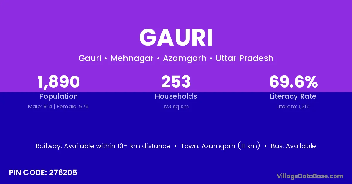 Hanumana (18 km) is the nearest town to Gauri village for major economic activities and is located approximately 18 km away.