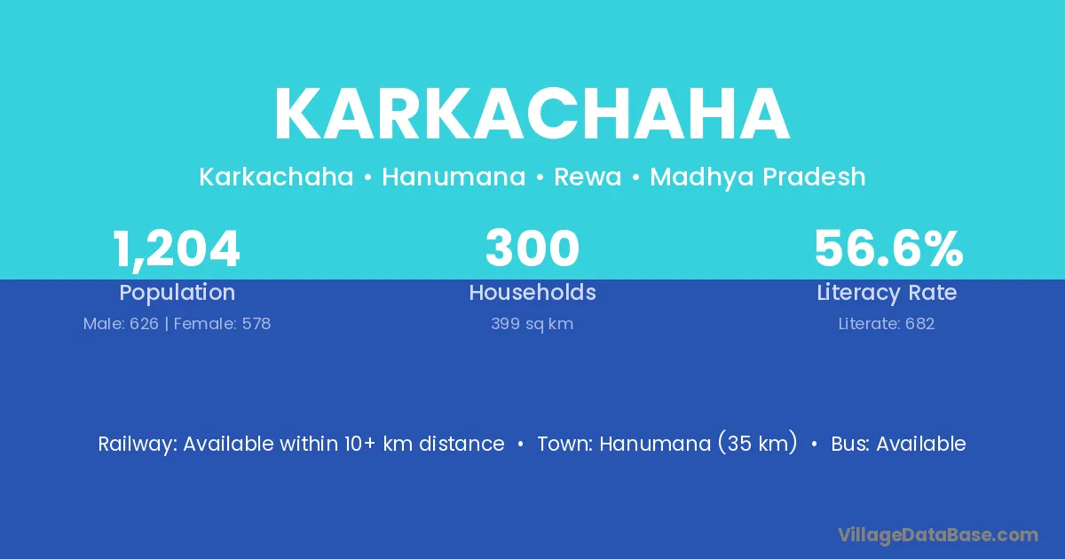 Hanumana (35 km) is the nearest town to Karkachaha village for major economic activities and is located approximately 35 km away.