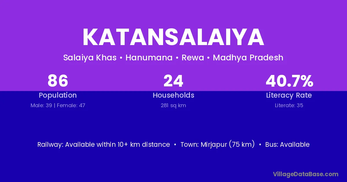Katansalaiya village has a total population of 86 people, of which 39 are males and 47 are females.
