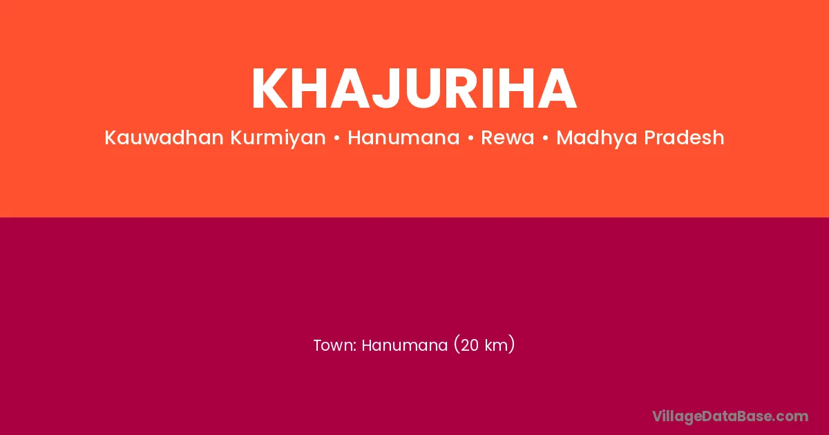 Hanumana (20 km) is the nearest town to Khajuriha village for major economic activities and is located approximately 20 km away.