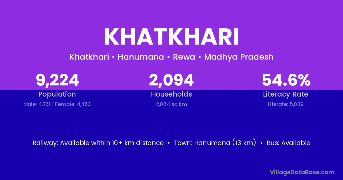 Hanumana (13 km) is the nearest town to Khatkhari village for major economic activities and is located approximately 13 km away.