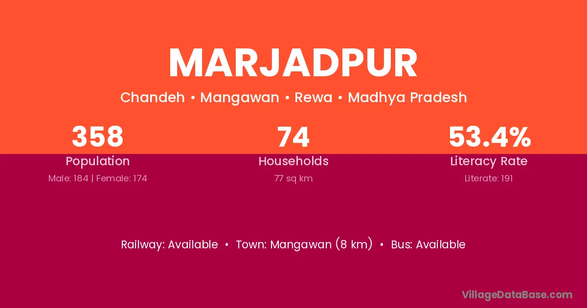 Hanumana (23 km) is the nearest town to Marjadpur village for major economic activities and is located approximately 23 km away.