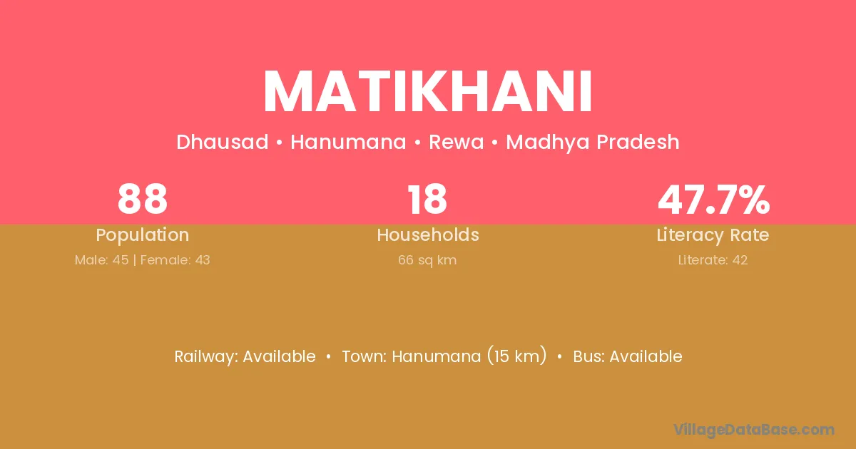 Matikhani village has a total population of 88 people, of which 45 are males and 43 are females.