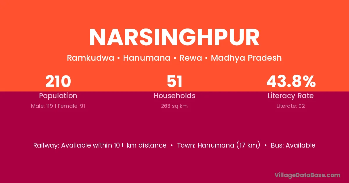 Hanumana (17 km) is the nearest town to Narsinghpur village for major economic activities and is located approximately 17 km away.