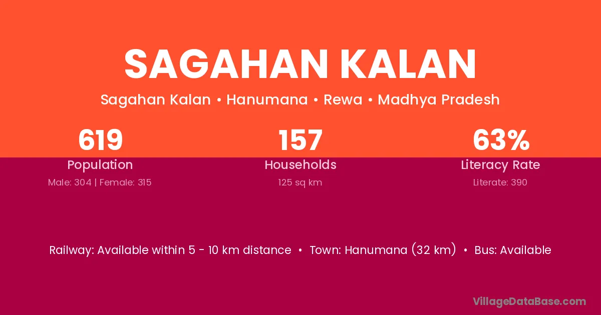 Hanumana (32 km) is the nearest town to Sagahan Kalan village for major economic activities and is located approximately 32 km away.