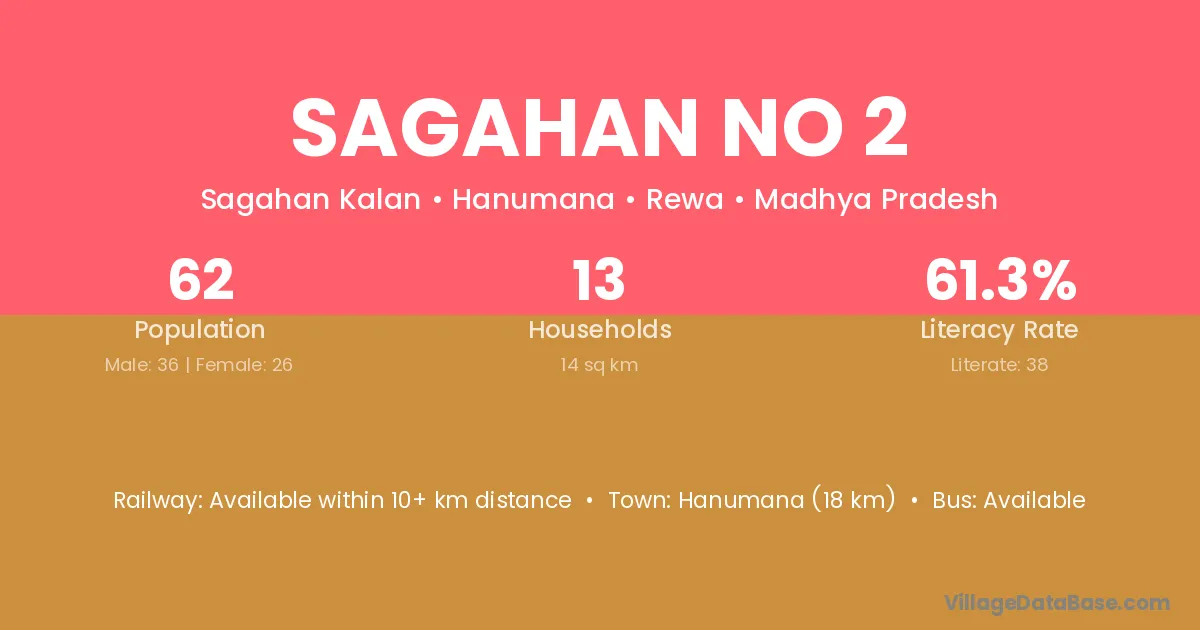 Hanumana (18 km) is the nearest town to Sagahan No 2 village for major economic activities and is located approximately 18 km away.