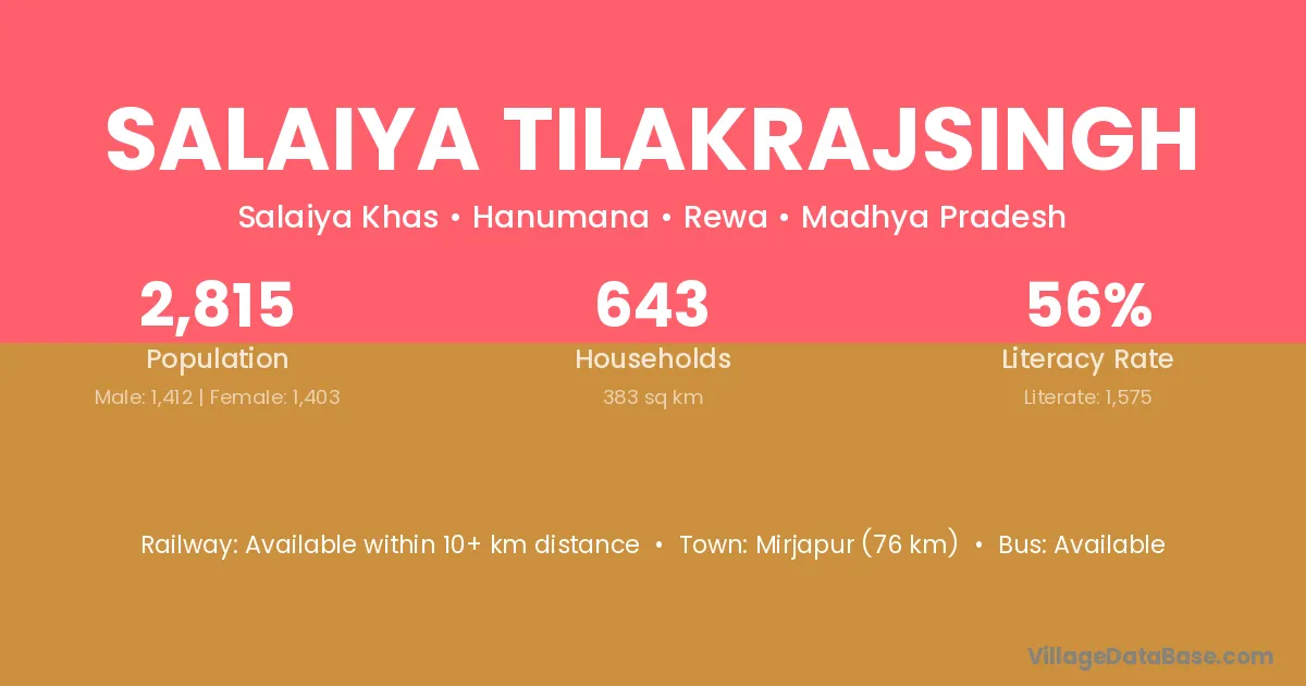 Salaiya Tilakrajsingh village is located in the Hanumana Tehsil of the Rewa district in Madhya Pradesh .