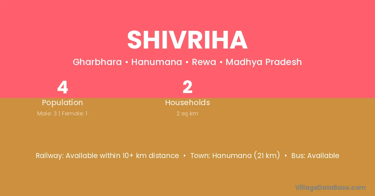 Hanumana (21 km) is the nearest town to Shivriha village for major economic activities and is located approximately 21 km away.
