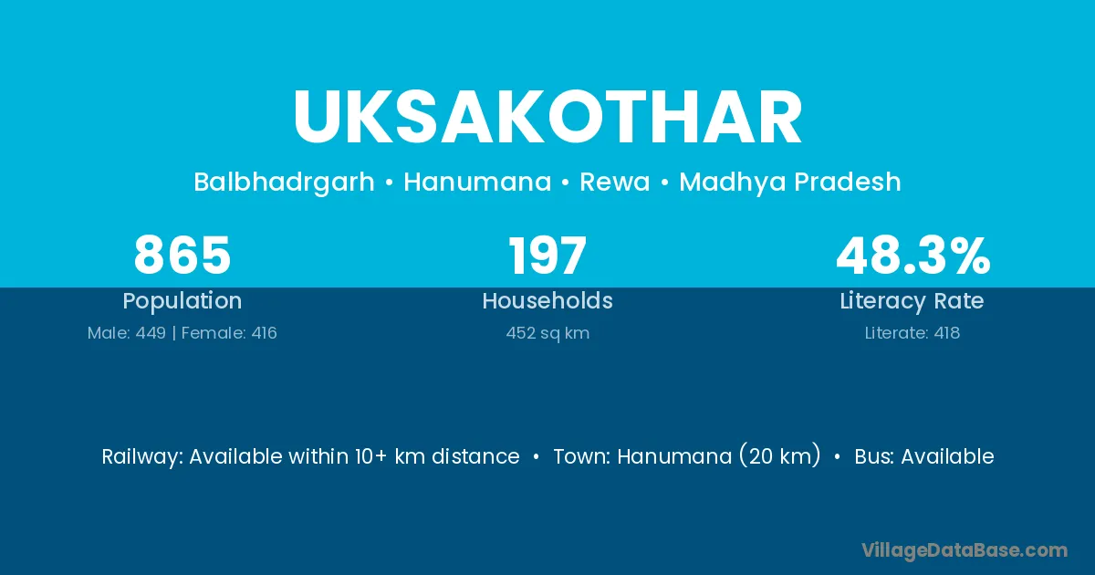 Uksakothar village has a total population of 865 people, of which 449 are males and 416 are females.