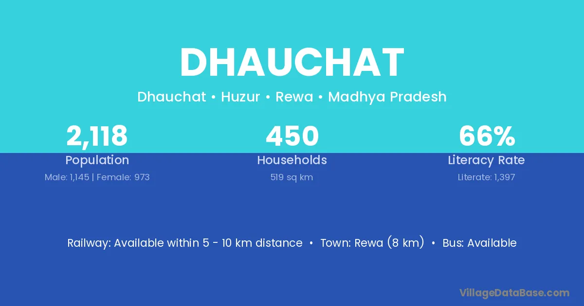 Rewa (8 km) is the nearest town to Dhauchat village for major economic activities and is located approximately 8 km away.