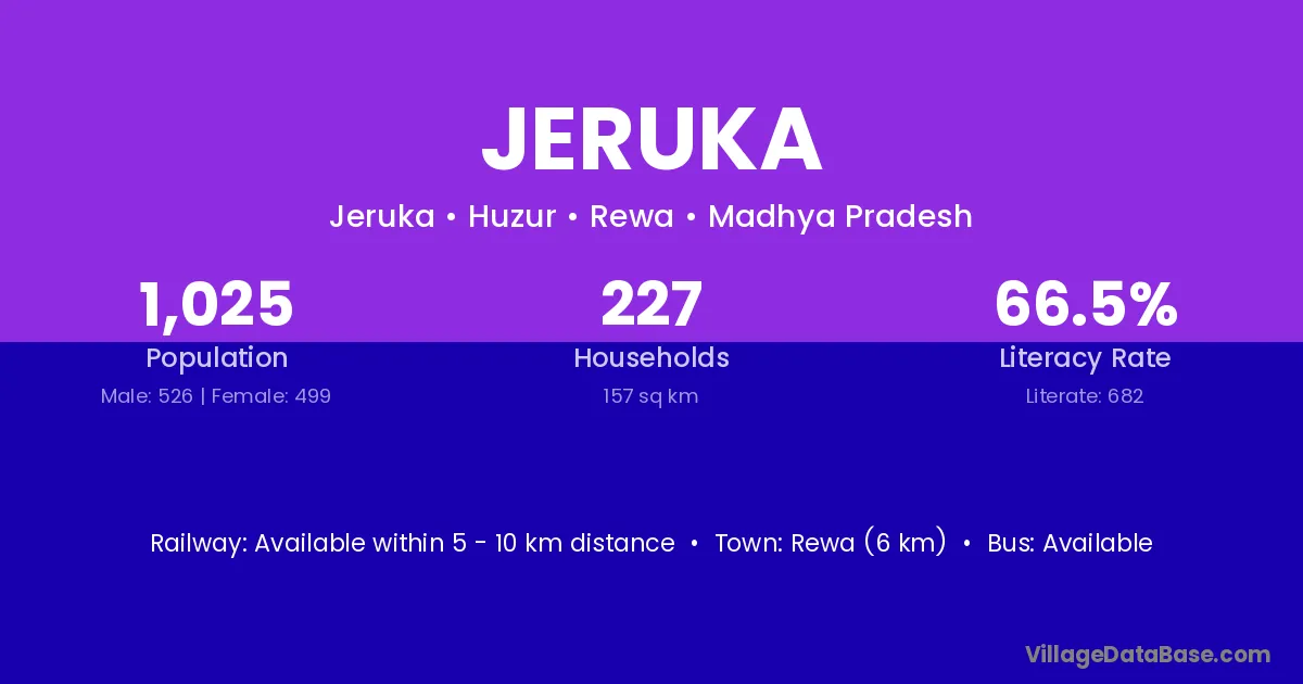 Rewa (6 km) is the nearest town to Jeruka village for major economic activities and is located approximately 6 km away.