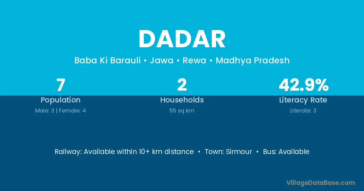 Dadar village has a total population of 7 people, of which 3 are males and 4 are females.