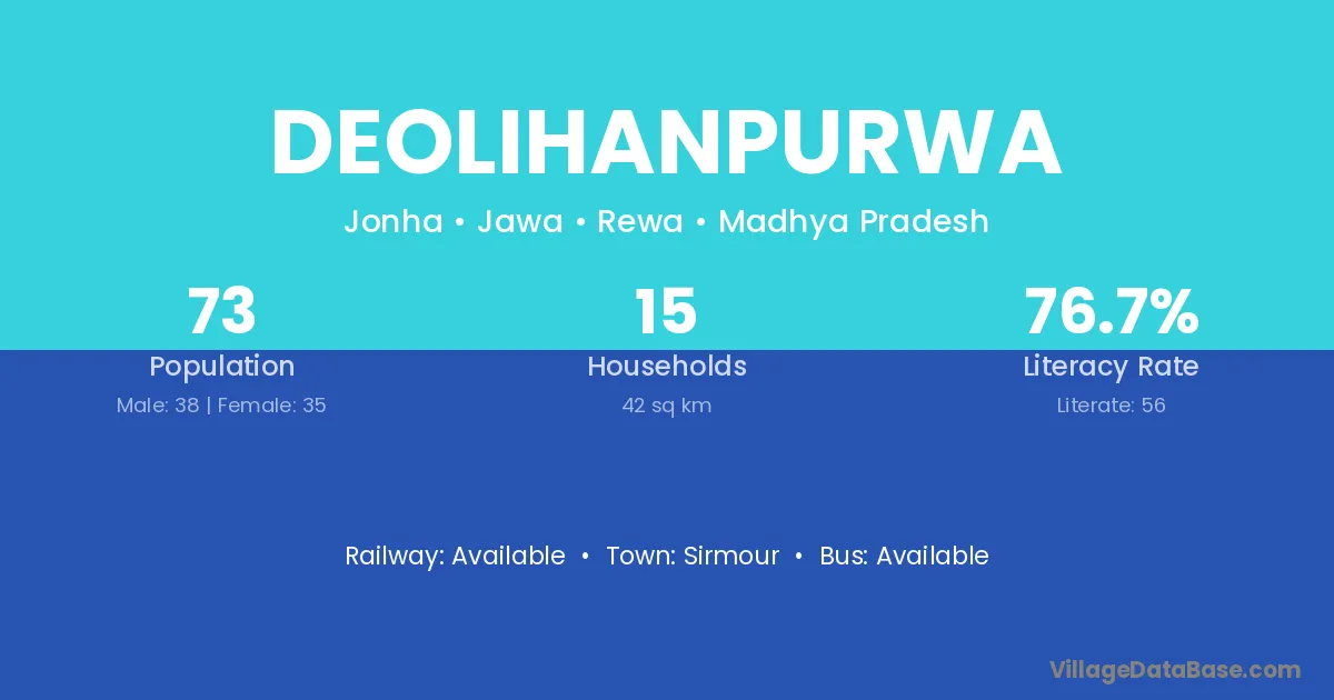 Deolihanpurwa village has a total population of 73 people, of which 38 are males and 35 are females.