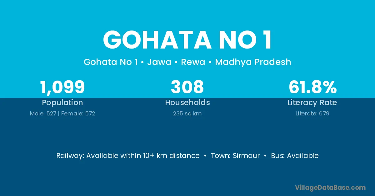 Gohata No 1 village has a total population of 1,099 people, of which 527 are males and 572 are females.