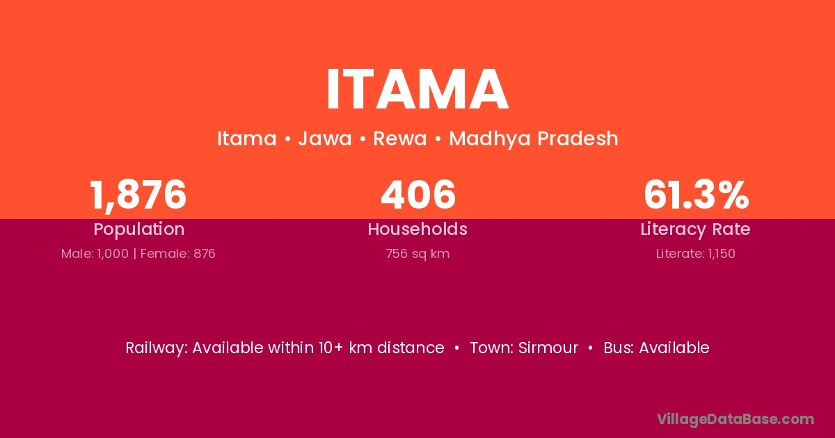 Itama village has a total population of 1,876 people, of which 1,000 are males and 876 are females.