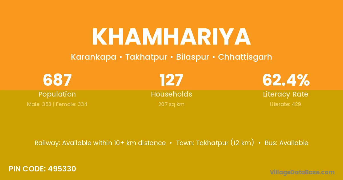 Rewa (70 km) is the nearest town to Khamhariya village for major economic activities and is located approximately 70 km away.