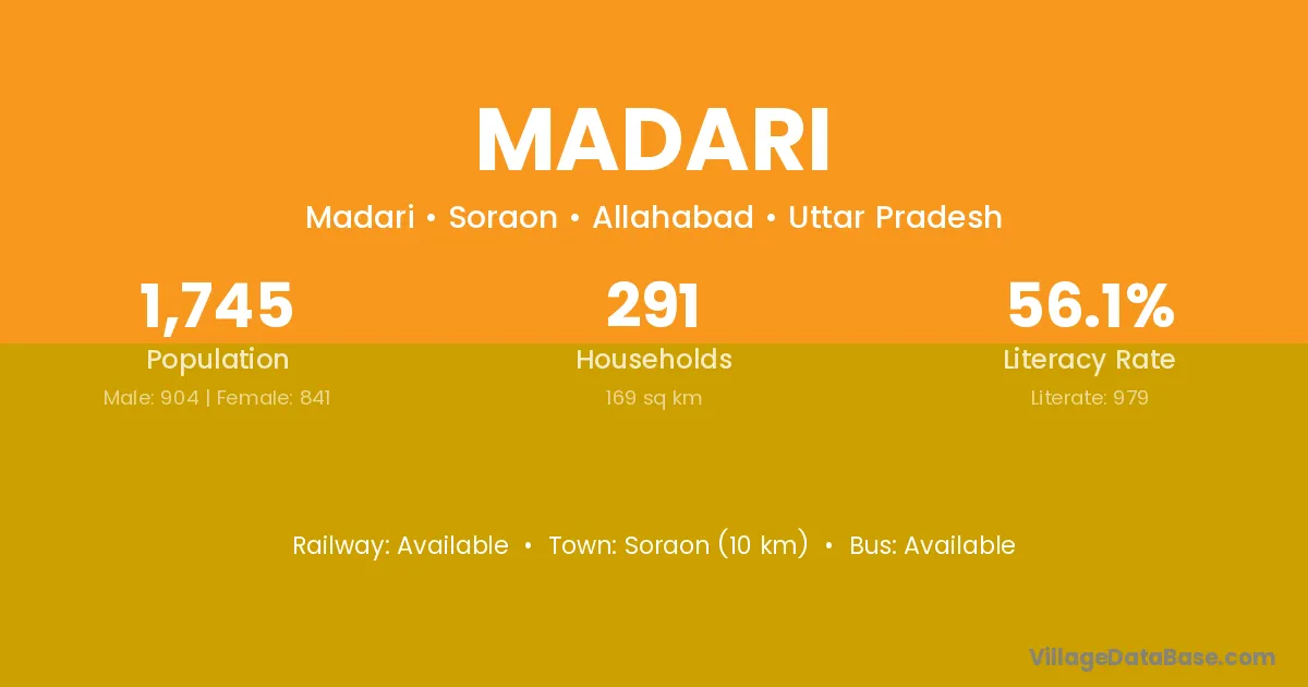 Rewa (8 km) is the nearest town to Madari village for major economic activities and is located approximately 8 km away.