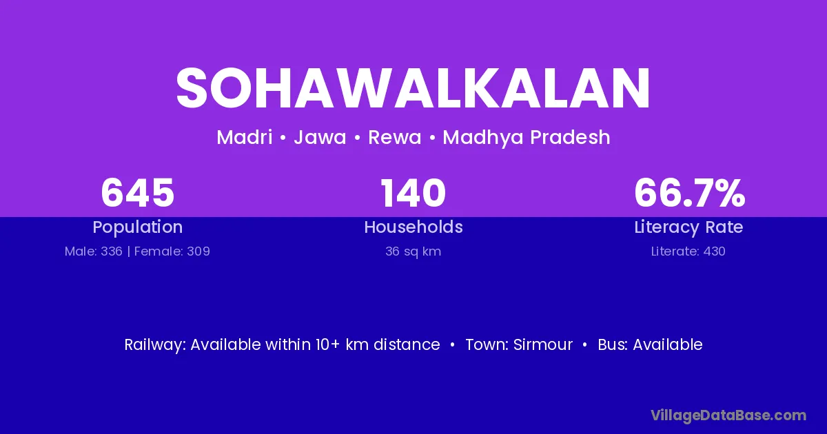 Sohawalkalan village has a total population of 645 people, of which 336 are males and 309 are females.