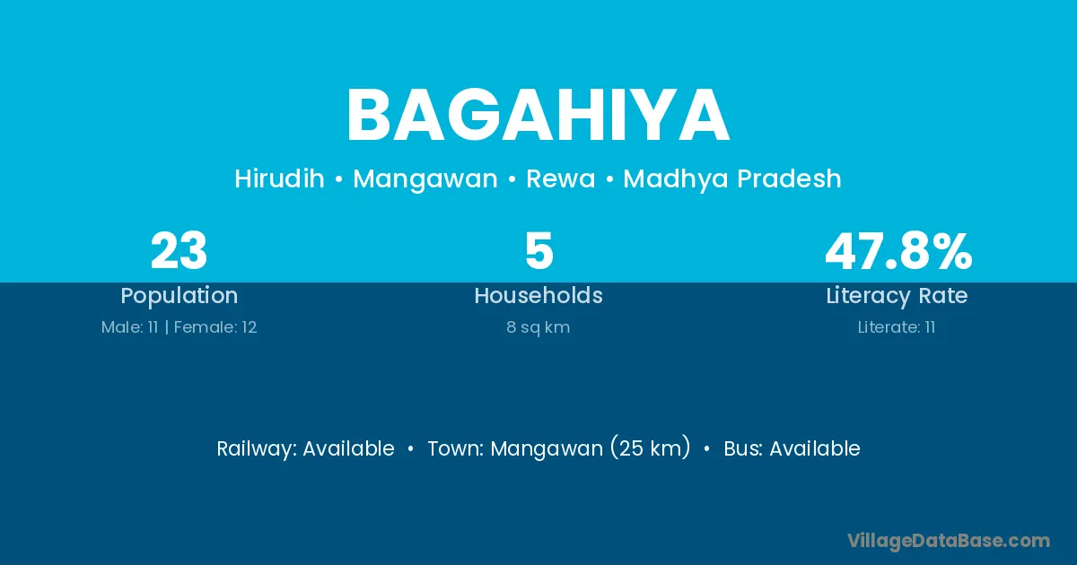 Bagahiya village has a total population of 23 people, of which 11 are males and 12 are females.