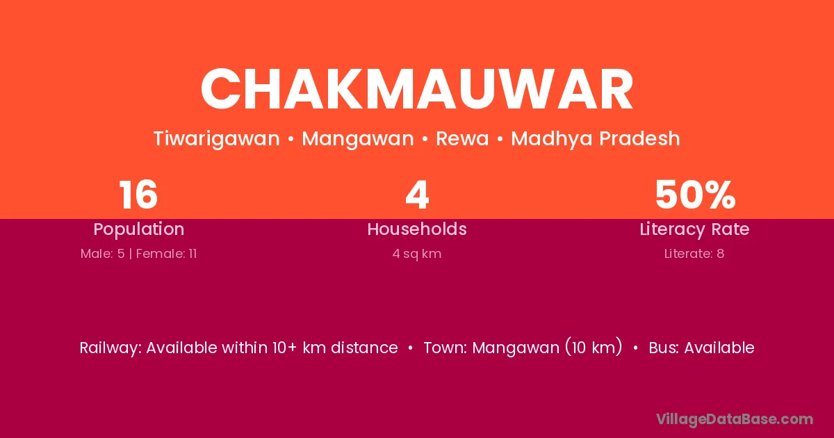 Chakmauwar village has a total population of 16 people, of which 5 are males and 11 are females.