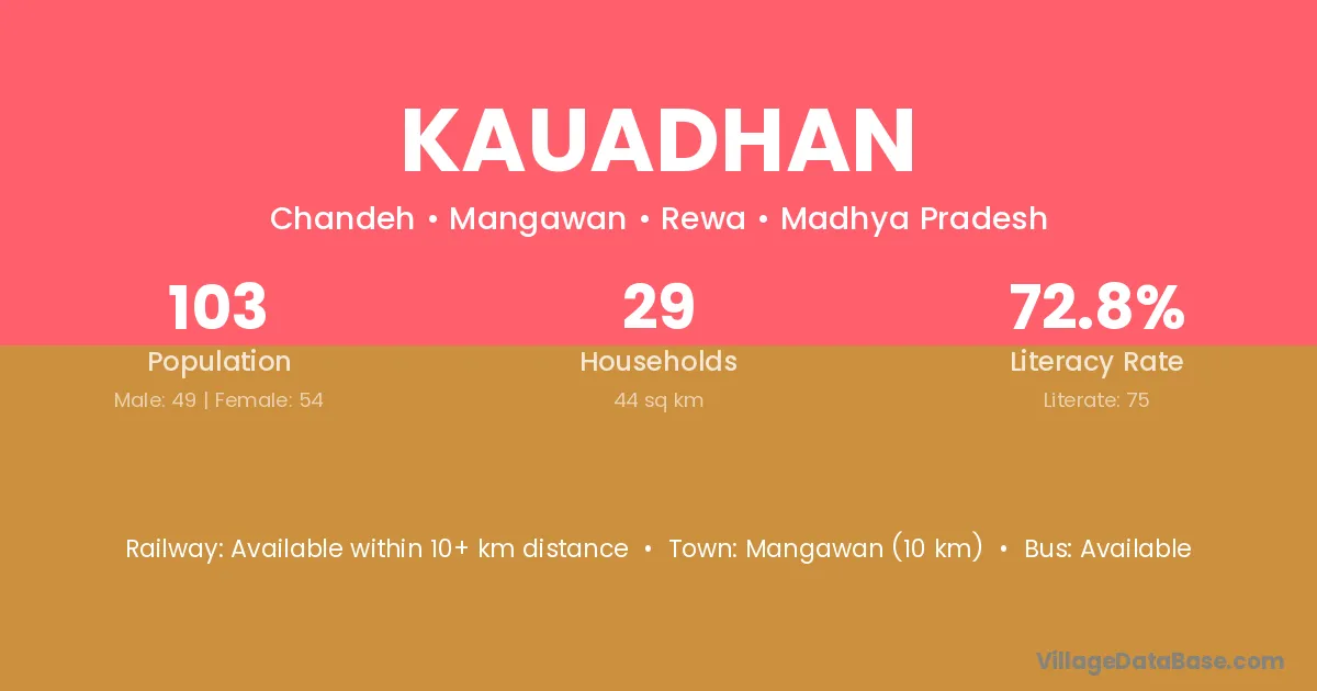 Kauadhan village has a total population of 103 people, of which 49 are males and 54 are females.