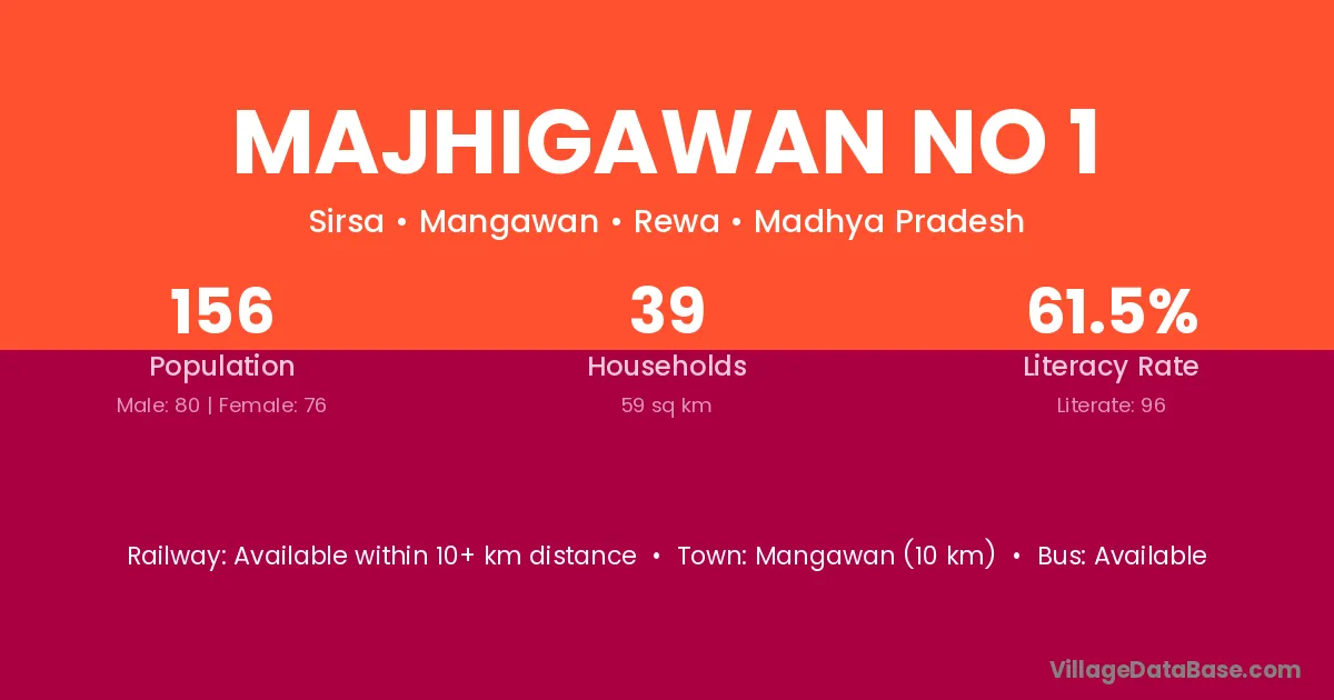 Majhigawan No 1 village has a total population of 156 people, of which 80 are males and 76 are females.