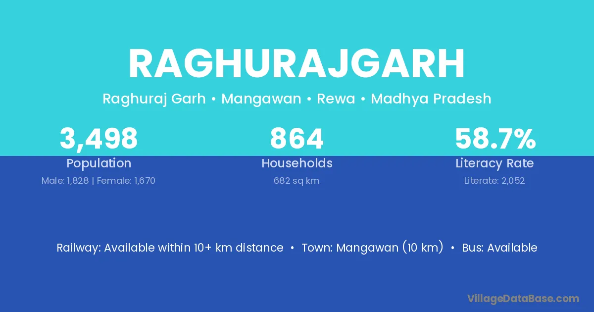Mangawan (10 km) is the nearest town to Raghurajgarh village for major economic activities and is located approximately 10 km away.