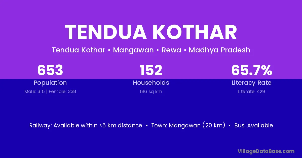 Mangawan (20 km) is the nearest town to Tendua Kothar village for major economic activities and is located approximately 20 km away.