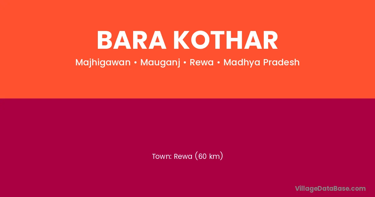 Rewa (60 km) is the nearest town to Bara Kothar village for major economic activities and is located approximately 60 km away.