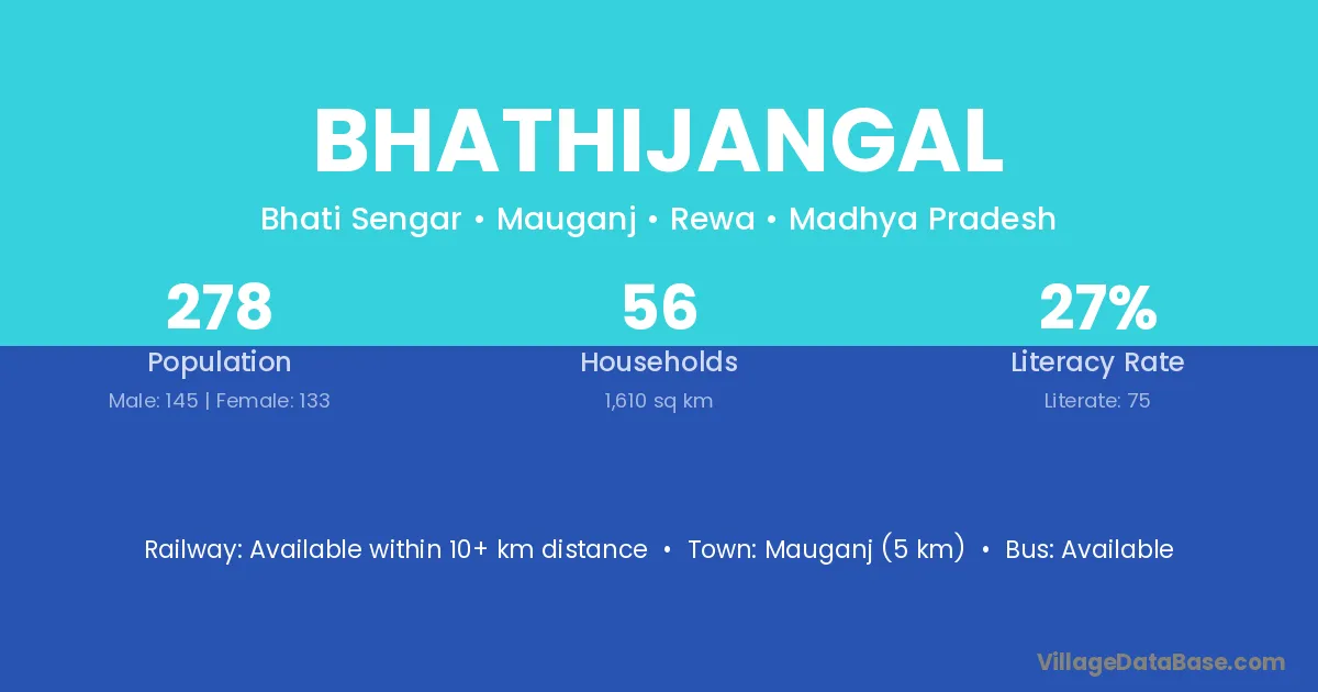 Mauganj (5 km) is the nearest town to Bhathijangal village for major economic activities and is located approximately 5 km away.