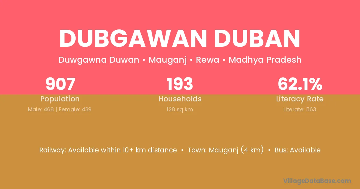 Mauganj (4 km) is the nearest town to Dubgawan Duban village for major economic activities and is located approximately 4 km away.