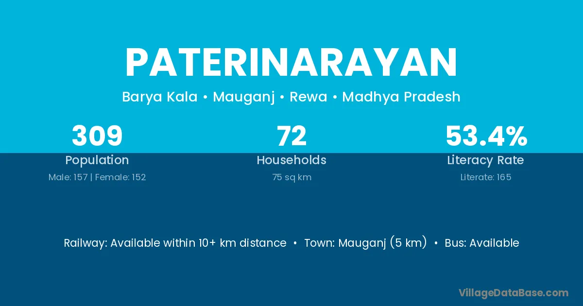 Mauganj (5 km) is the nearest town to Paterinarayan village for major economic activities and is located approximately 5 km away.