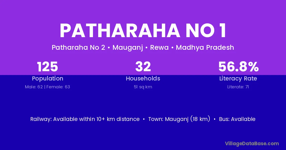 Mauganj (18 km) is the nearest town to Patharaha No 1 village for major economic activities and is located approximately 18 km away.