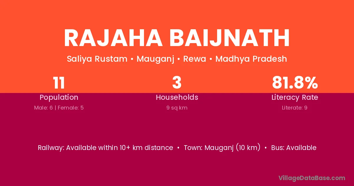 Mauganj (10 km) is the nearest town to Rajaha Baijnath village for major economic activities and is located approximately 10 km away.
