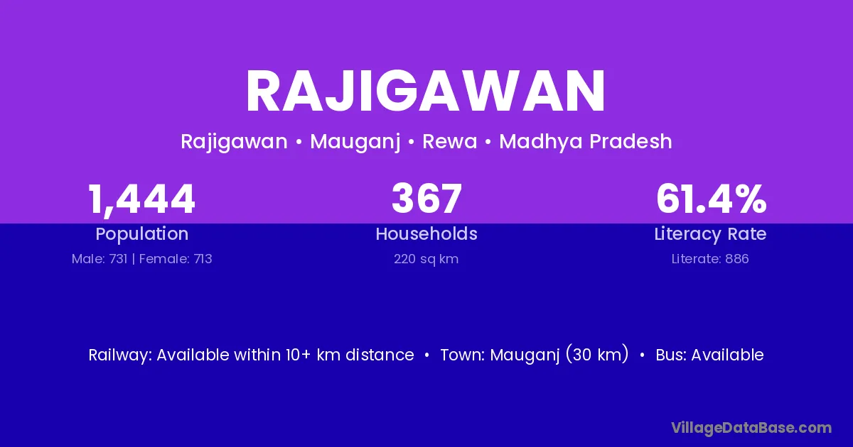 Mauganj (30 km) is the nearest town to Rajigawan village for major economic activities and is located approximately 30 km away.