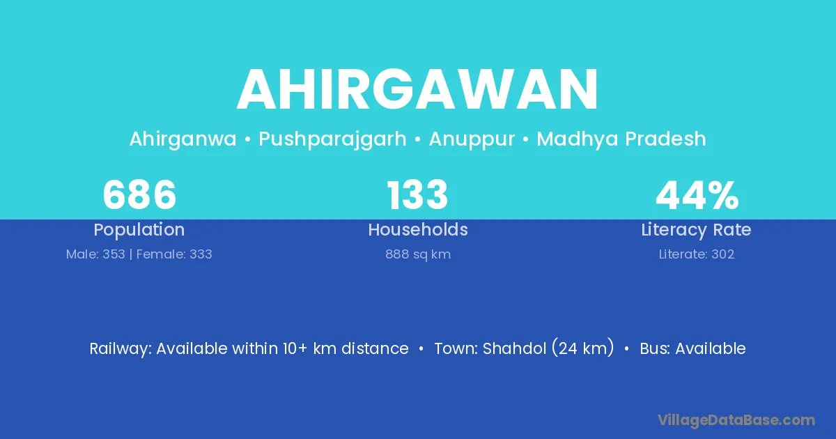 The literacy rate of Ahirgawan village is 28.57%. Male literacy stands at 50.00% and female literacy at 0.00%.