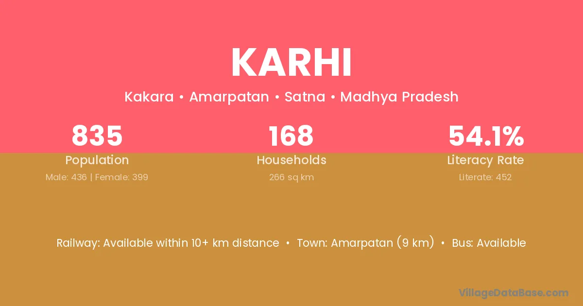 Rewa (70 km) is the nearest town to Karhi village for major economic activities and is located approximately 70 km away.