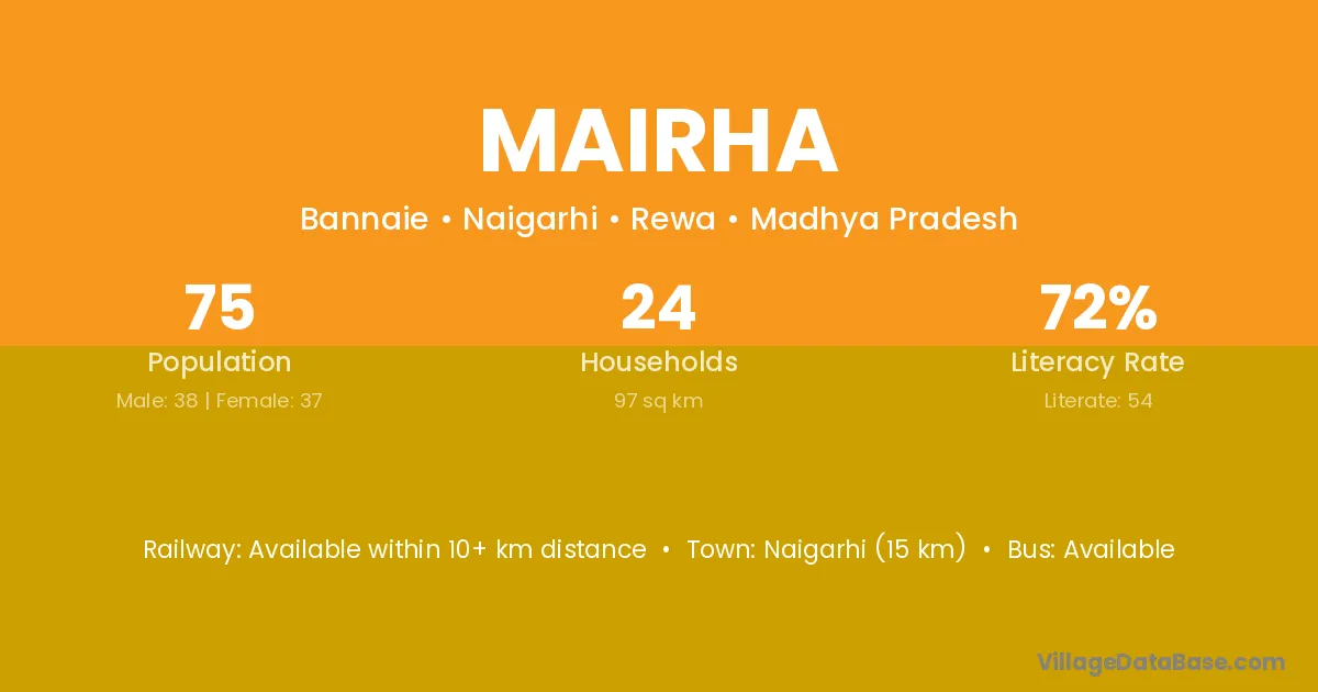 Mairha village has a total population of 75 people, of which 38 are males and 37 are females.