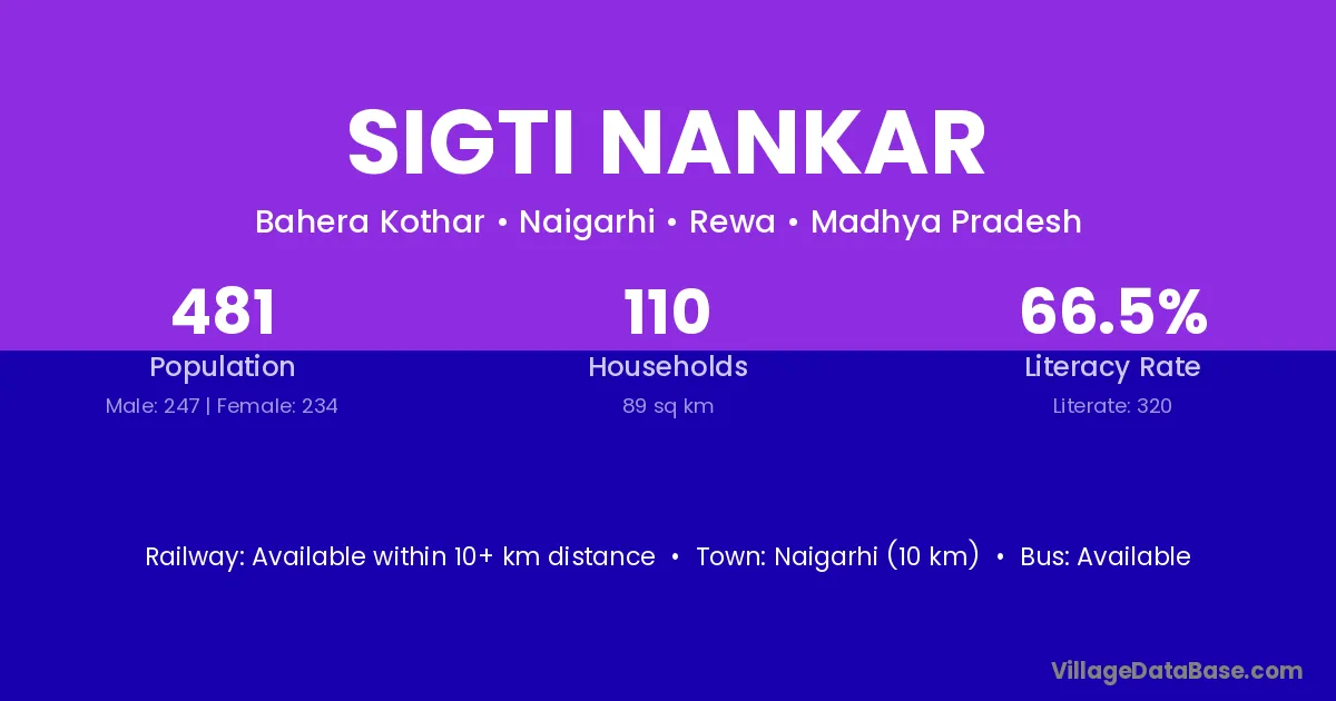 Sigti Nankar village has a total population of 481 people, of which 247 are males and 234 are females.