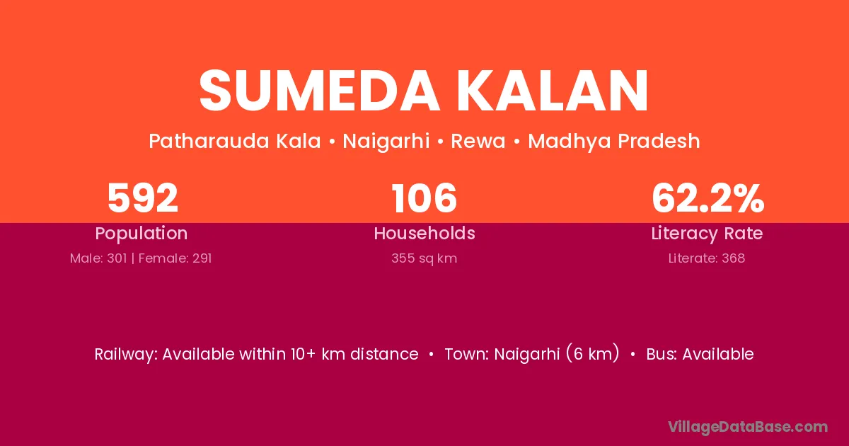 Sumeda Kalan village has a total population of 592 people, of which 301 are males and 291 are females.