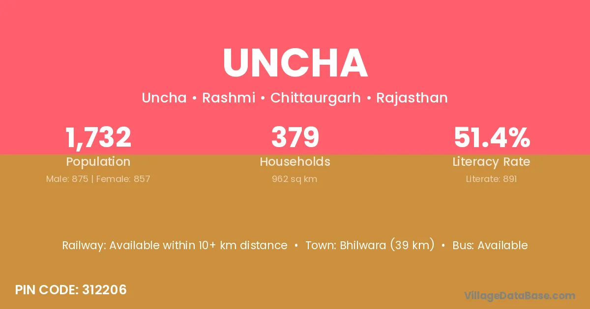 Naigarhi (16 km) is the nearest town to Uncha village for major economic activities and is located approximately 16 km away.
